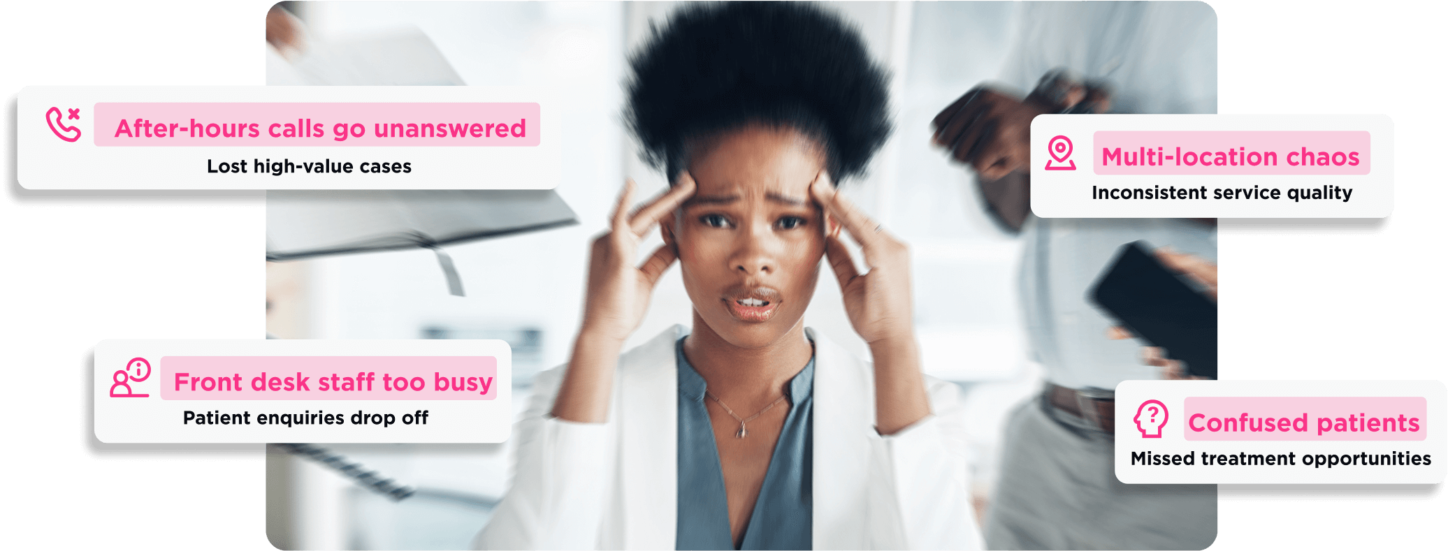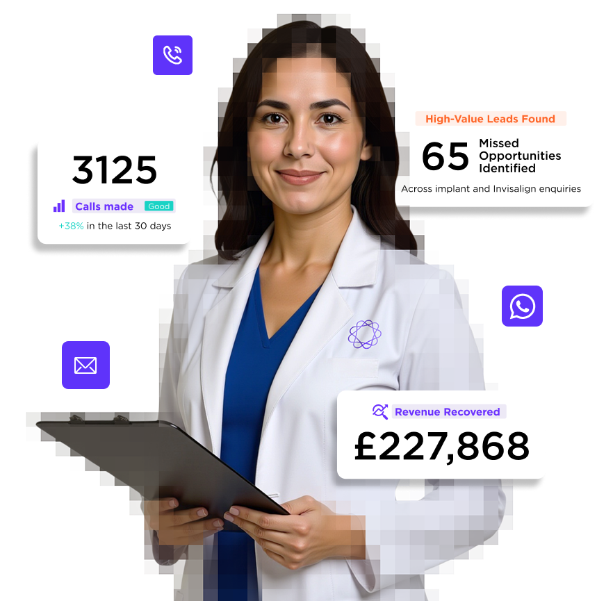 Every missed call is missed revenue. Our AI Receptionist & Call Analysis Agent helps dental clinics, cosmetic clinics, and multi-location healthcare groups recover lost opportunities, increase conversion rates by up to 40%, and reduce admin workload by 30–40%.