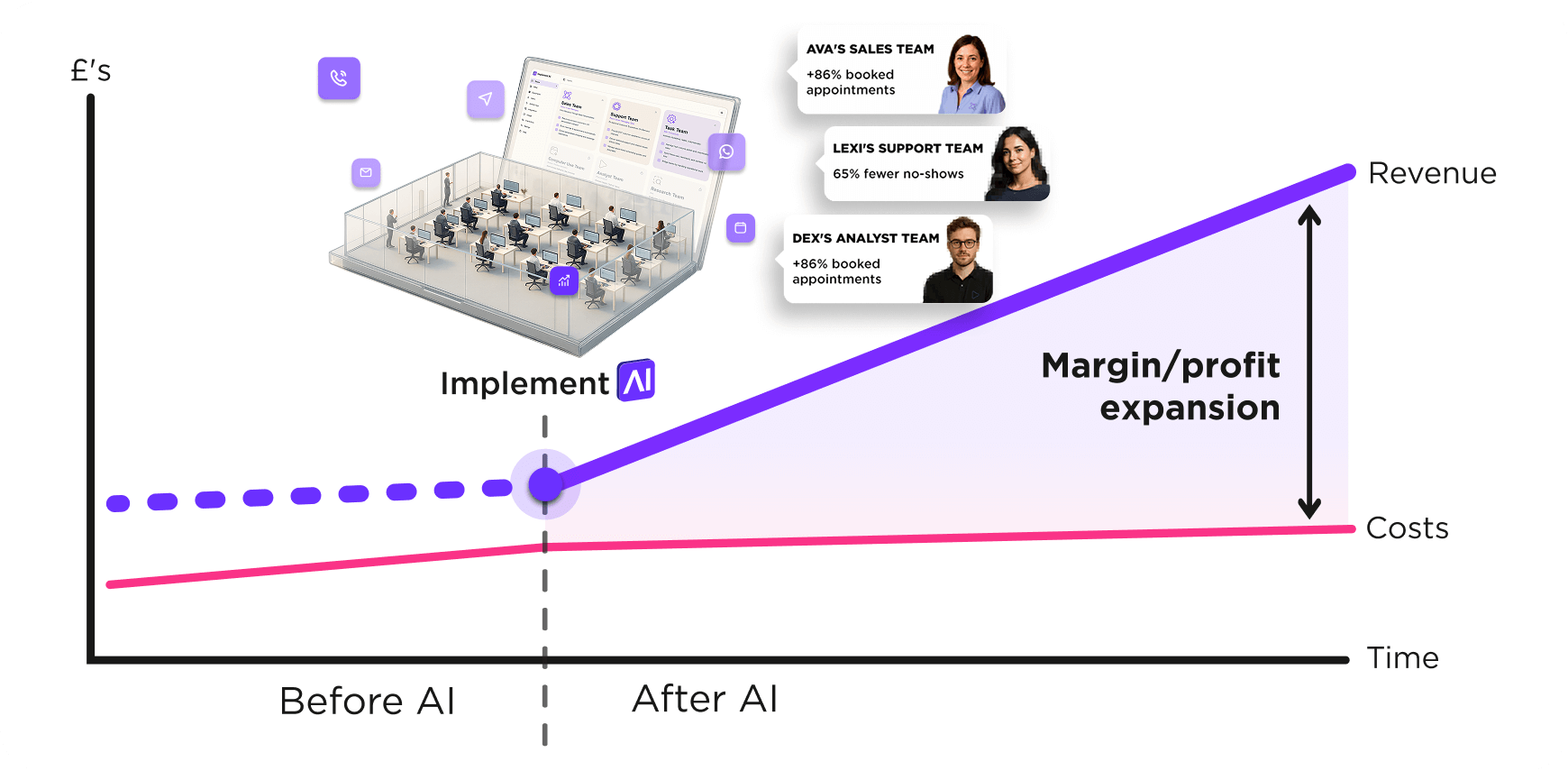 Implement AI is a digital workforce company that deploys teams of AI agents which work together to increase revenue without adding headcount.