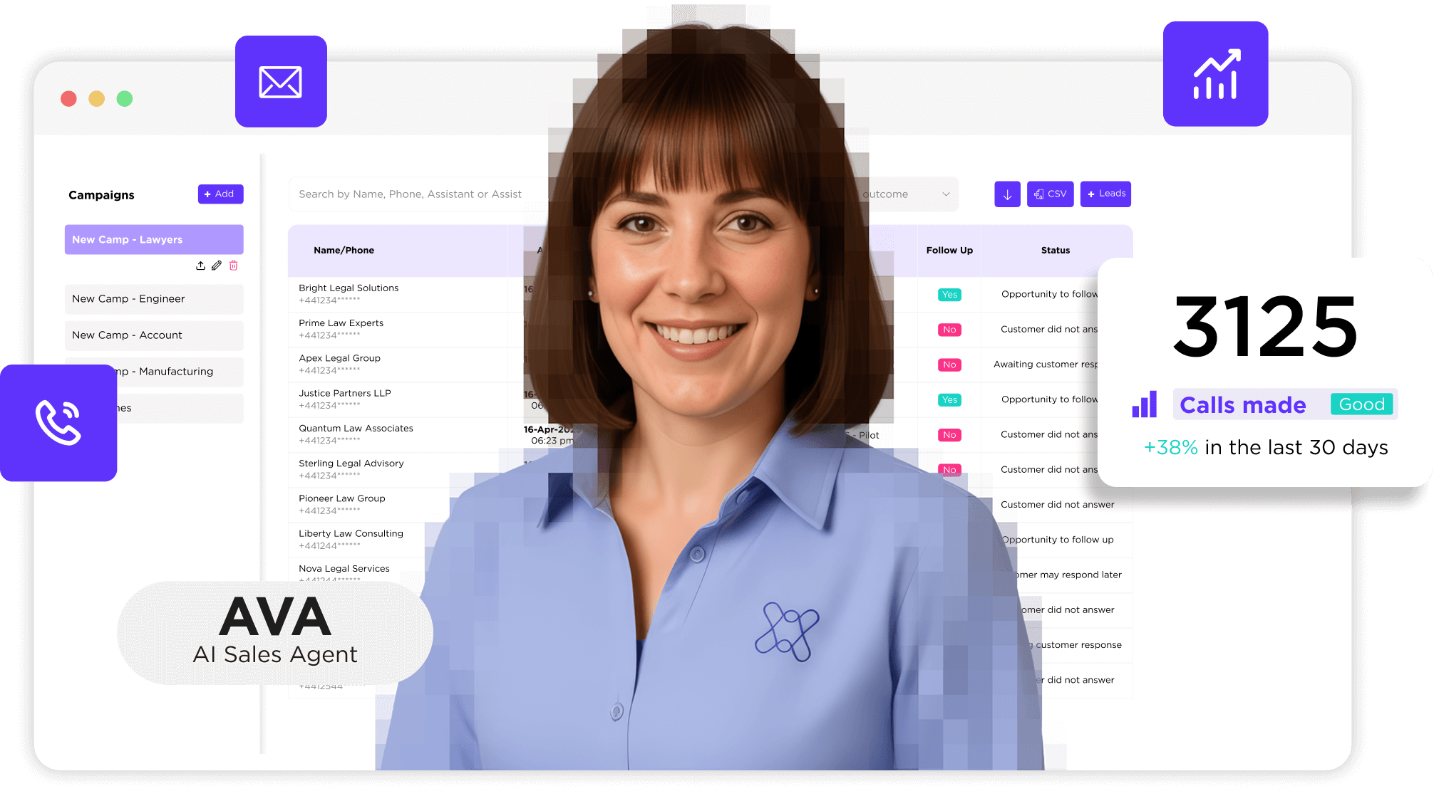 - Deploy a AI Sales Agent that engages and converts leads 24/7 through voice conversations.
